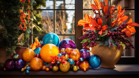 Vibrant festive scene, a burst of joyful colors and seasonal elements