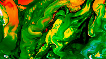 Abstract multi-colored paint background. Acrylic texture with marble pattern. Wallpaper. Mixing paints. Modern art.