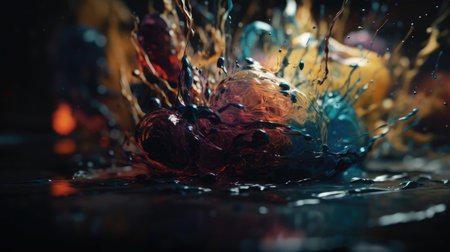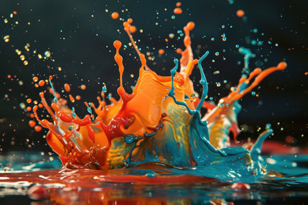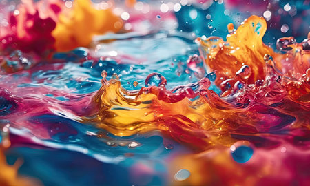 Vibrant abstract splash with paint and liquid movement. Great for expressive designs, artistic posters, and energetic branding.