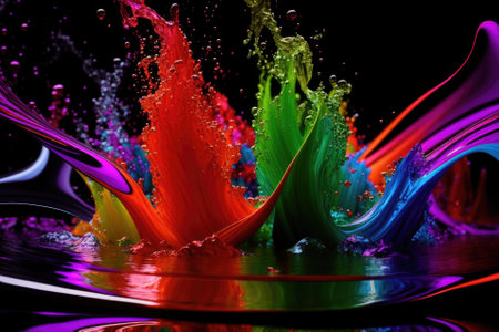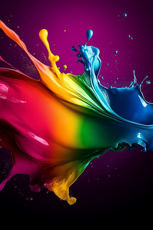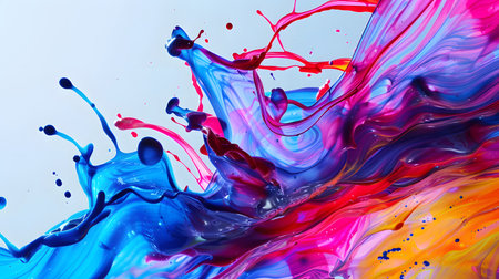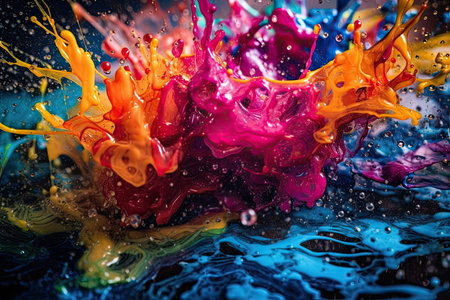 Captivating image showcasing vivid splashes of paint in motion. The dynamic display of colors creates a lively and visually striking moment frozen in time.