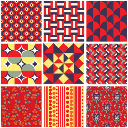 Set of 9 bright seamless pattern swatches