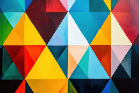 A striking display of multicolored triangular shapes creates a visually captivating geometric abstraction, emphasizing vibrant design elements.