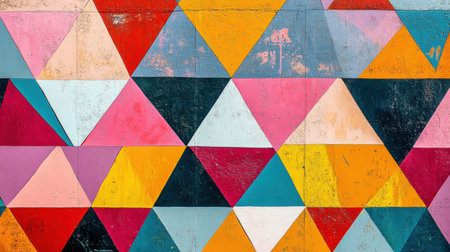 Brightly colored triangular patterns create an eye-catching geometric design, adding a contemporary touch to the urban environment.
