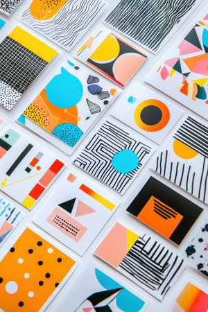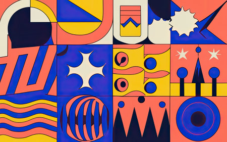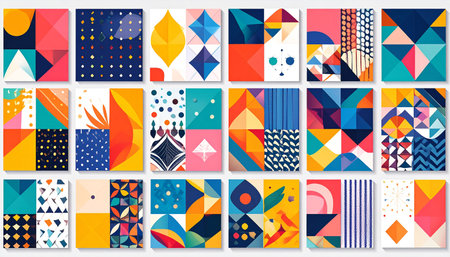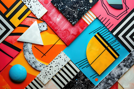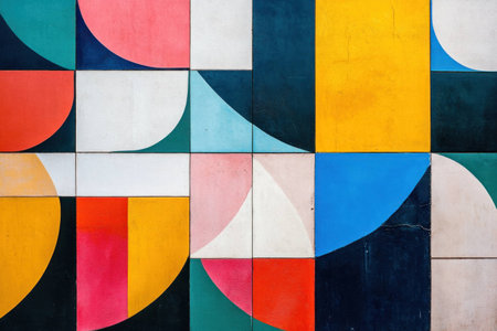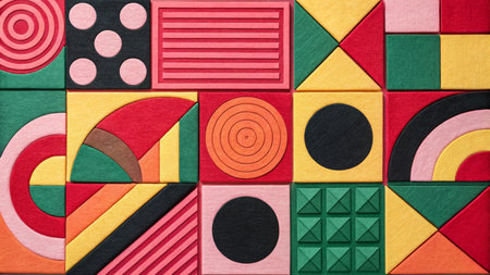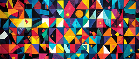 Abstract colorful geometric pattern created with bold shapes and vibrant colors, suitable for contemporary art and design enthusiasts