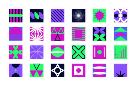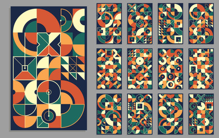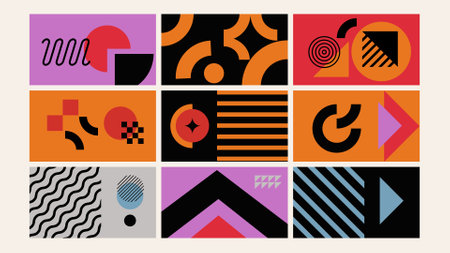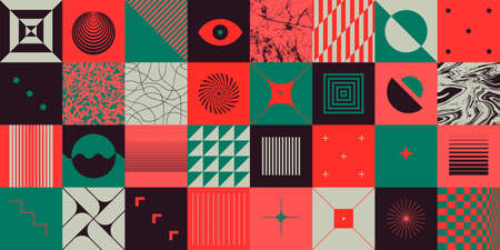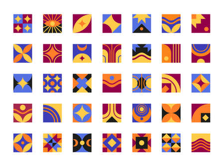 Funky geometric design. Vintage 50s abstract tile, geometrical colorful textures. Bauhaus minimal delicate garish vector collection. Illustration of tile vintage geometry, hipster bauhaus pattern