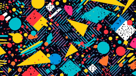 Dynamic representation of geometric elements in the style of 80s Memphis design. The composition embraces the retro aesthetic with bold shapes, vibrant colors, and playful patterns, capturing the essence of the iconic 80s visual language. --ar 3:2 --style raw --stylize 280 Job ID: 2044af39-bffa-4643-9cd6-1d31d6870b96