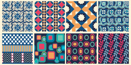 Vector Set of abstract geometric seamless patterns artwork, decorative seamless backgrounds. Repeating graphic texture, wallpaper collection, design for fabric or paper print.