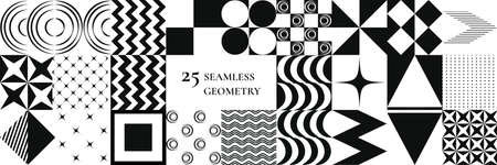 a set of geometric seamless patterns. abstract element: circle, line, triangle, point. element: in the style of a single line. wallpaper from Memphis, minimalism. for print, banner, postcard. vector art illustration