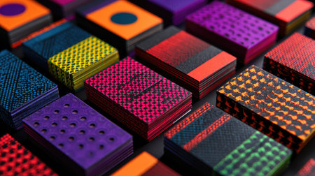 Geometric patterns with vibrant colors creating an eye-catching texture on a surface