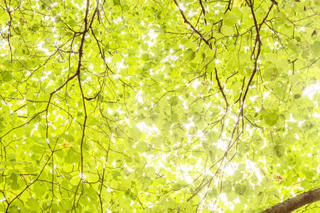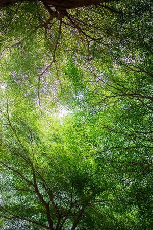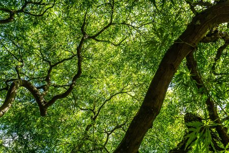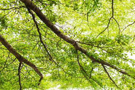 A large tree branch background,Beautiful green tree with branches and leaves.Under the shade of tall trees in tropical.
