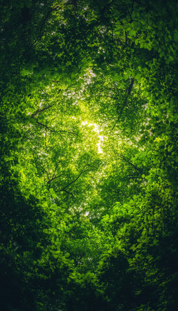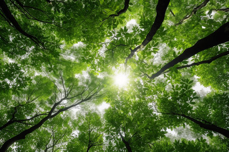 Lush Green Canopy Sunlight Forest Trees Nature View sky art calm woods image fresh leaves summer