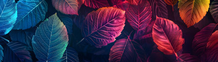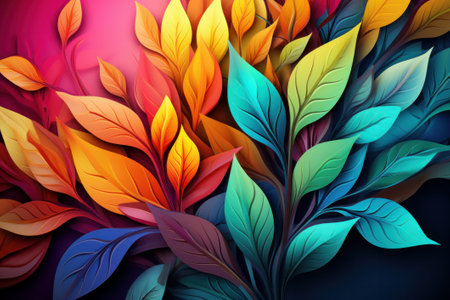 leaves in technicolor, digital art illustration, Generative AI