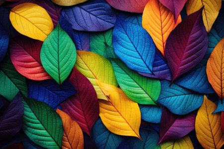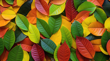A bunch of colorful leaves are arranged in a pattern, AI