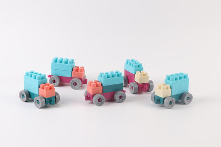 Red toy car which made from the blocks, isolated on white background with clipping path.