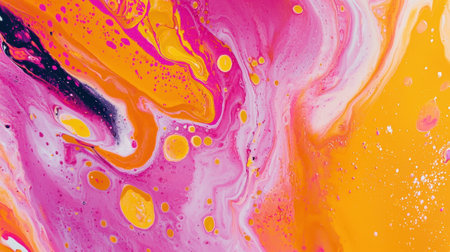 Swirling patterns of pink, orange, and yellow create an energetic and captivating abstract composition. The interplay of colors showcases delicate textures and dynamic movement.
