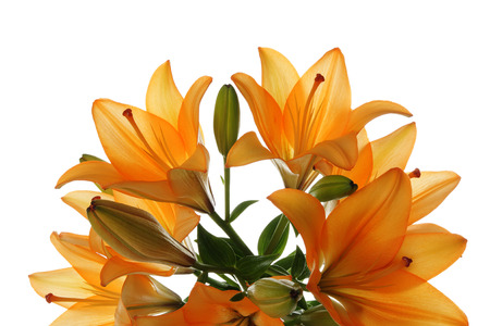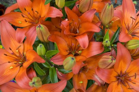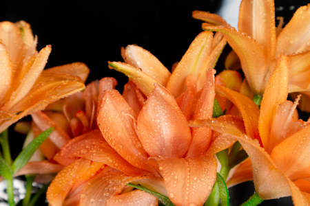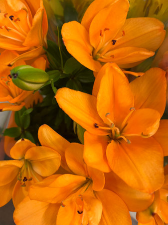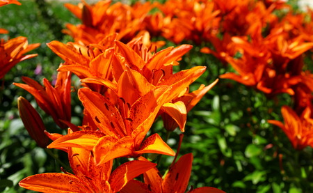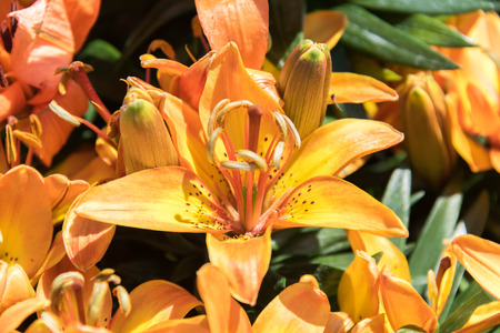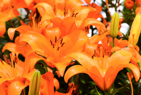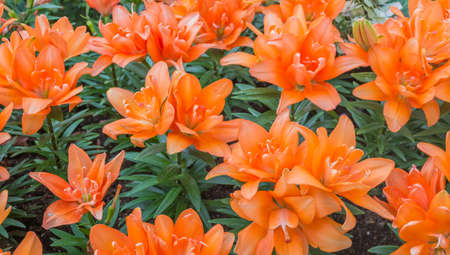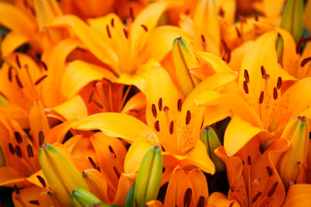Brightly orange lily flowers. Beautiful flowers with orange petals.