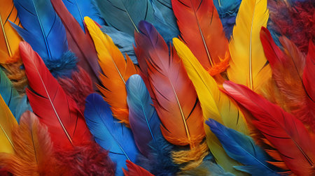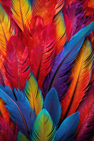 Capture the essence of nature's beauty with this vivid close-up of multicolor feather patterns showcasing intricate textures and bright hues.