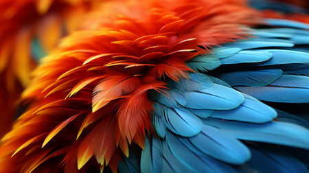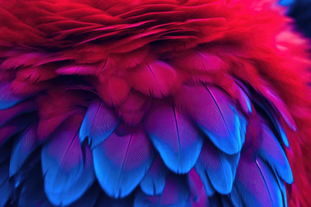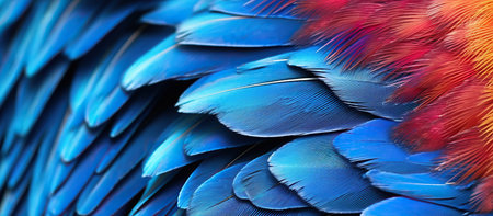Explore the beauty of nature with this close-up image of red and blue feathers, highlighting intricate textures and vibrant colors in stunning detail.