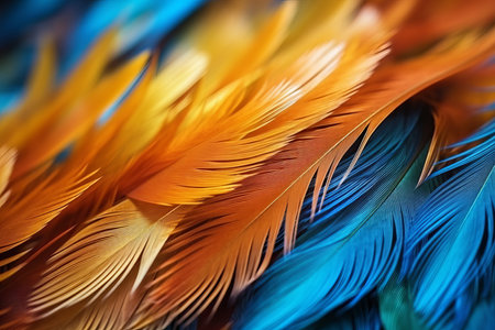 Macro shot of colorful feathers. Selective focus and shallow depth of field.