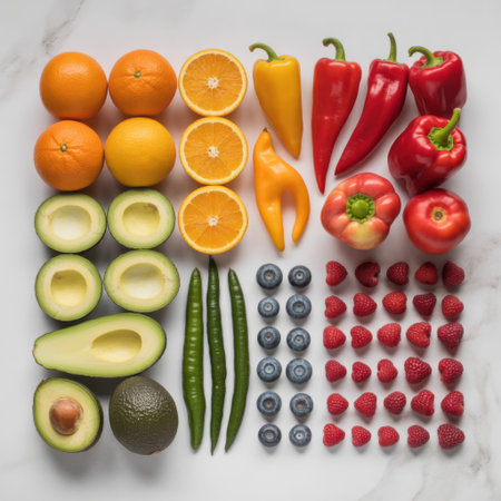 Vibrant Rainbow of Fresh Fruits and Vegetables Arranged Artfully