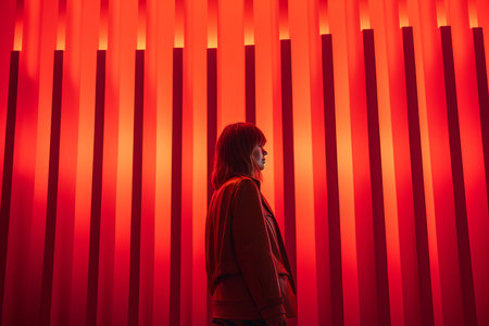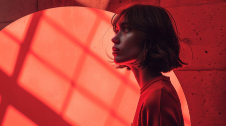 Sculptural Woman in Monochromatic Vision Against Vivid Red