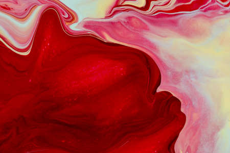 Acrylic Fluid Art. Pink and red waves and whites inclusion. Abstract marble background or texture.