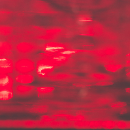 Abstract red light pattern with blurred shapes and glowing bokeh effects creating a vibrant atmosphere at night