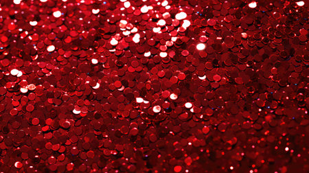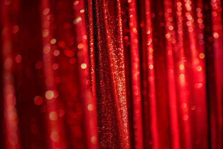 A red curtain with a shiny, glittery texture. The curtain is hanging in the air, and the light is shining on it, creating a beautiful, eye-catching effect