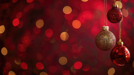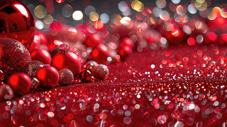A captivating arrangement of red ornaments set against a shimmering bokeh background, perfect for evoking the joy and warmth of the holiday season.