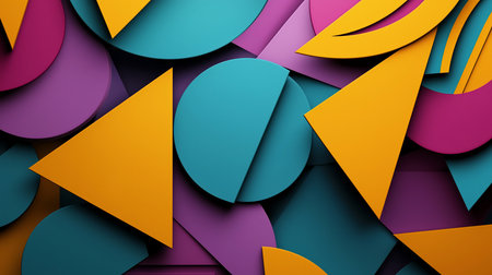 This dynamic abstract background features an array of vibrant geometric shapes in bold colors, perfect for creative design projects and artistic inspiration.