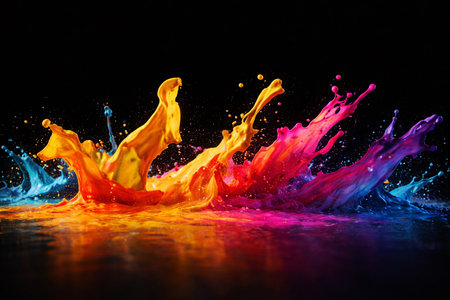 A captivating image of vibrant paint splashes. Dynamic and colorful.