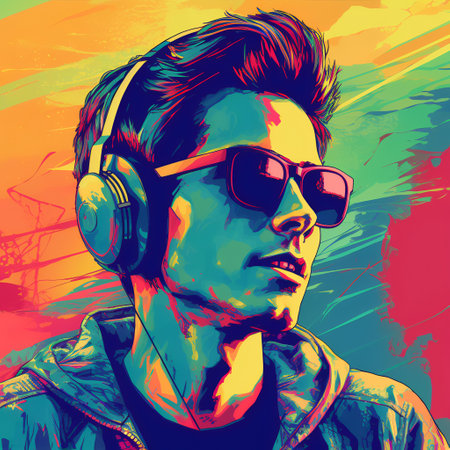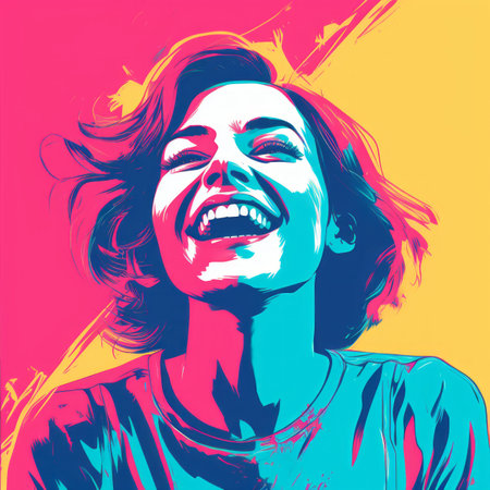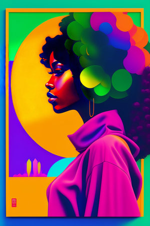 An AI-generated pretty Afro woman side portrait on pop-style abstract colorful background