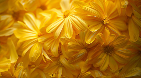 yellow flowers with green leaves are beautifully arranged on a vibrant yellow background. this photo captures the delicate impressionism style, reminiscent of paper sculptures. the sparse background enhances the soft variations of color, creating a visually pleasing composition. shot with a fujifilm x-t4, this image showcases the artistic influence of carl kleiner. ai generated
