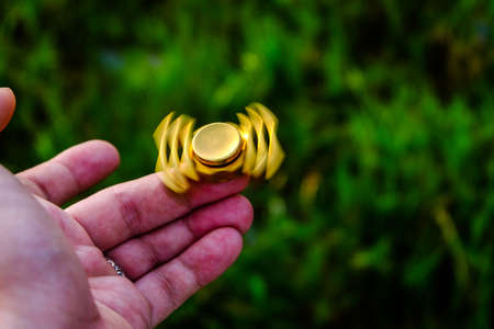 Fidget spinner (Hand spinner) fast spinning in hand on nature background