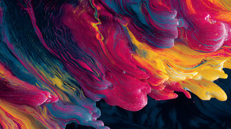 A vibrant abstract background featuring bold and colorful paint strokes. This artwork showcases dynamic patterns and fluid textures in a lively composition.