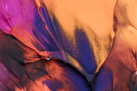 Abstract background of acrylic paint in orange and blue tones