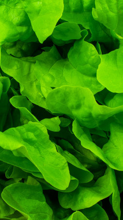 Close-up of fresh spinach and curly lettuce leaves. Vibrant green textures highlight the organic and healthy food concept. Perfect for diet, nutrition, and vegetarian themes