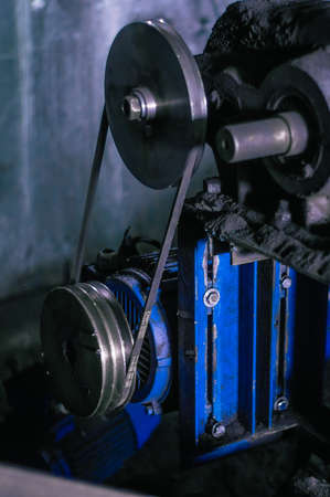 Industrial equipment blue hydraulic pump motor, blurred background. CharCoal industry