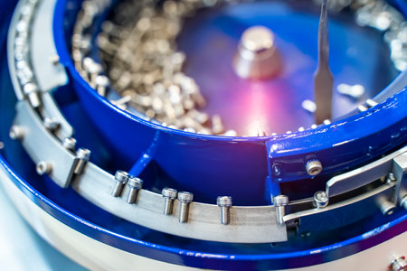 Close-up of mechanical pneumatic equipment elements in manufacturing equipment production