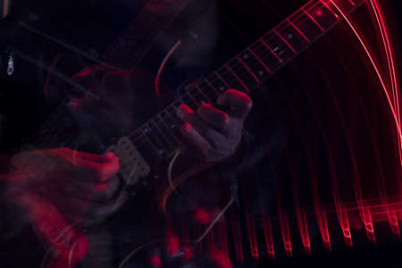 Plays the electric guitar close-up, music concept
