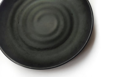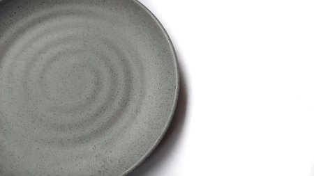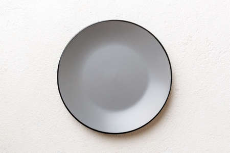 Empty circle grey ceramic plate isolated on white background. Top view. Flat lay.