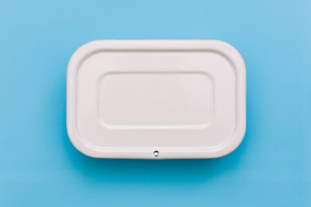 White container for food on a blue background. Packaging for storing breakfast, dinner or lunch