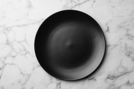 Empty plates on black background, premium dishware for holiday dinner, minimalistic design and diet concept