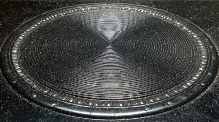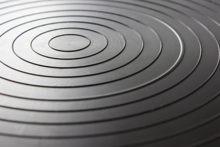 Concentric circles on textured black surface, close-up view. Abstract geometric pattern concept