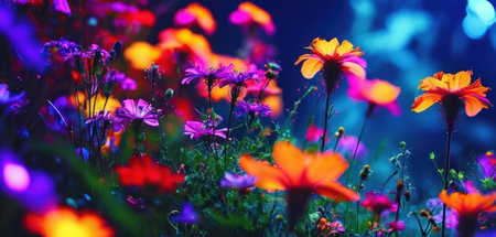 beautiful flowers on the meadow at night,colorful flowers