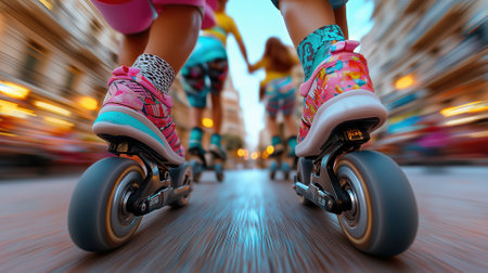 A pair of stylish retro roller skates featuring colorful wheels, ideal for conveying energy, movement, and the joy of outdoor activities in modern photography.