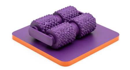 Leg massage roller placed on a gym bench with space for copy about recovery and fitness.