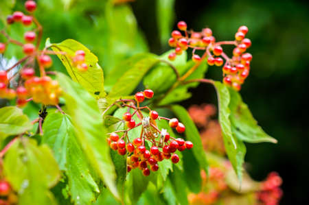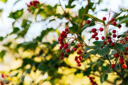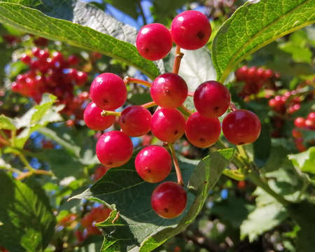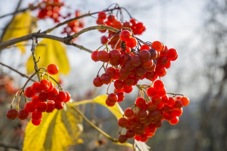 Photography on theme beautiful sour berry viburnum with natural texture under clean sky, photo consisting of many sour berry viburnum outdoors in rural, floral sour berry viburnum in big nature garden