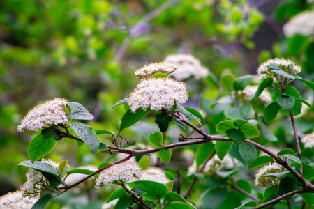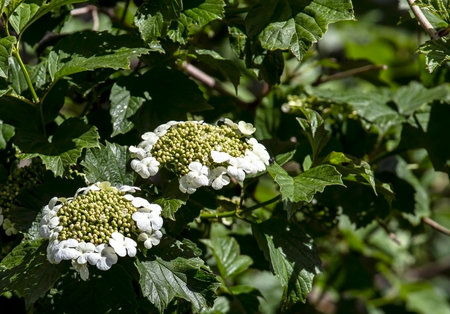 Viburnum vulgaris blooms, a useful plant with the Latin name Viburnum opulus