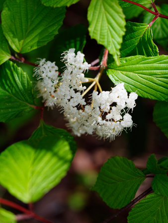 Hydrangea arborescens, sevenbark spring flowers closeup selective focus